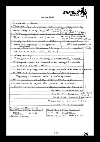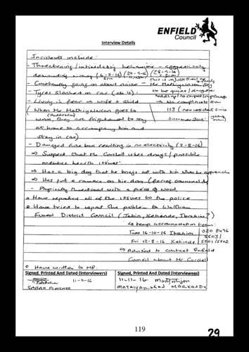 what they let my neighbours do to me. The Enfield Homes and the Enfield Council staff aloud the