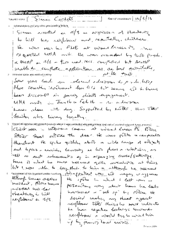 Details: 08 Jan 2016 15:30 Goodie Adama Significant: No Added to Risk History: No Contains Third Party Info: No Conceal From Client: Not Concealed 87 EIS case & referral meeting: I gave feedback on Simon. I reported that he