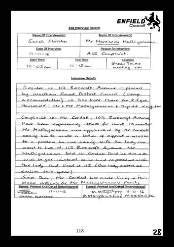 Street, Enfield, EN1 3XY at 2pm on Tuesday, 6th December 2016 to discuss this matter. Please ask to see Mr Lemmy Nwabuisi from the ASB Team, Community