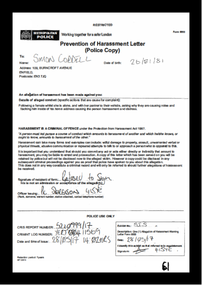 behaviour and to see if they rehouse them. The 03rd of January 2017 the Enfield council claim that they