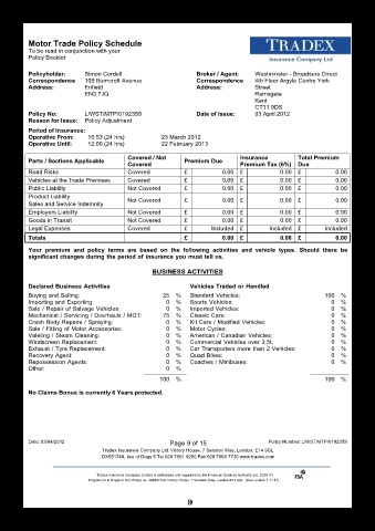 Policyholder: Simon Cordell Broker / Agent: Westminster - Broadsure Direct
