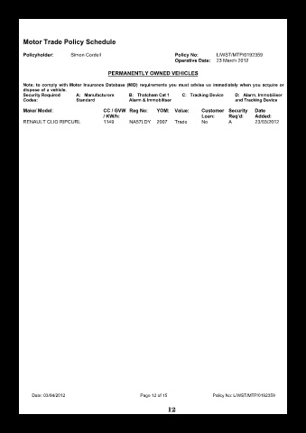 Date: 03/04/2012 Page 12 of 15 Policy No: L/WST/MTP/0192359