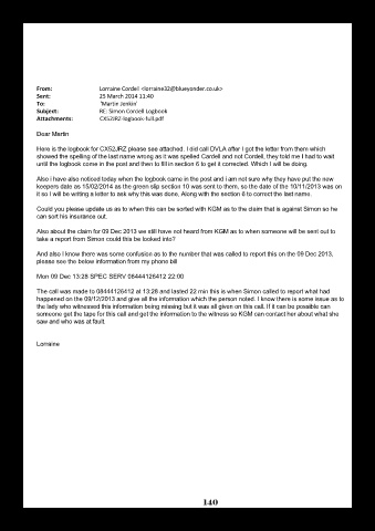 Also about the claim for 09 Dec 2013 we still have not heard from KGM as to when someone will be sent out to
