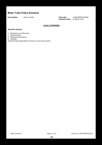 Date: 03/04/2012 Page 15 of 15 Policy No: L/WST/MTP/0192359