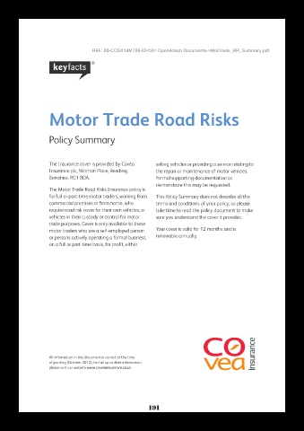 for full or part-time motor traders, working from This Policy Summary does not describe all the