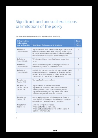 Exceptions to Any compulsory excess or voluntary excess as chosen by 19