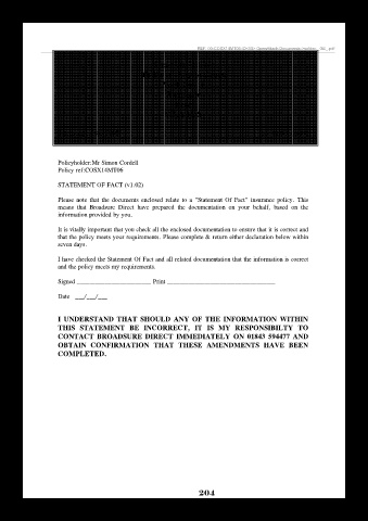 Please note that the documents enclosed relate to a "Statement Of Fact" insurance policy. This