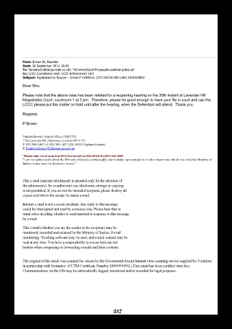 Please note that the above case has been relisted for a reopening hearing on the 30th instant at Lavender Hill