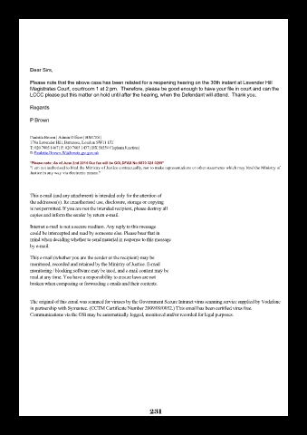Please note that the above case has been relisted for a reopening hearing on the 30th instant at Lavender Hill