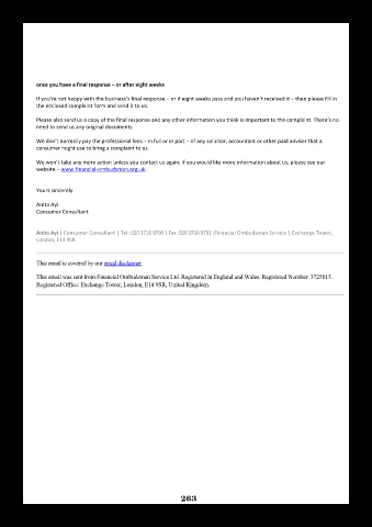 Anita Ayi | Consumer Consultant | Tel: 020 3716 9790 | Fax: 020 3716 9791|Financial Ombudsman Service | Exchange Tower,