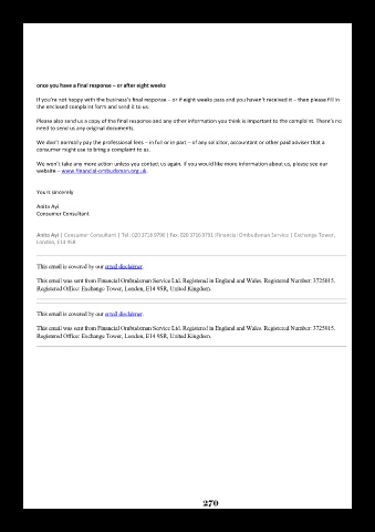 Anita Ayi | Consumer Consultant | Tel: 020 3716 9790 | Fax: 020 3716 9791|Financial Ombudsman Service | Exchange Tower,