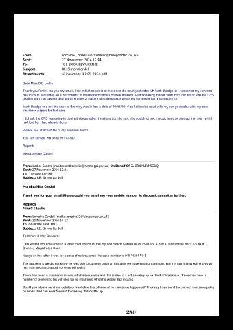 I am writing this email due to a letter from the court that my son Simon Cordell DOB 26/01/2014 had a case on the 06/11/2014 in