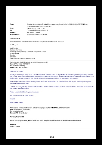 Mark Dredge told me the case at Bromley was in fact a date of 20/05/2014 so I attended court with my son yesterday with my sons