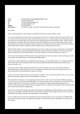 case of the 14/11/2013 where the police officer told KGM I had tools in my van to void my insurance. Kelly Tiller from the trade