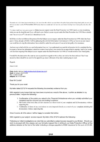 Following our initial investigations we note that you submitted a subject access request to your Broker. Should you