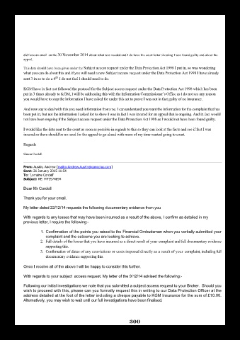 did have an email on the 30 November 2014 about what was needed and I do have the court letter showing I was found guilty and about the