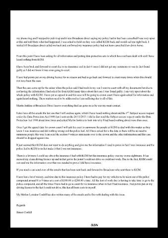 whole policy with KGM. I have put an appeal in and this case will be going to crown court I have again asked for information and