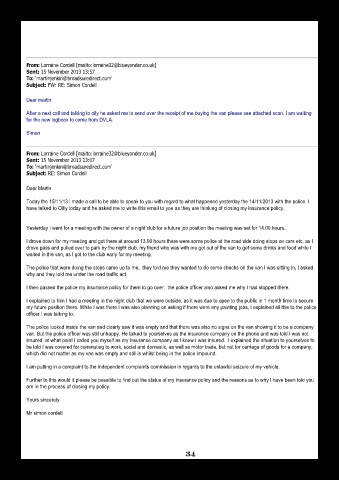 Today the 15/11/13 I made a call to be able to speak to you with regard to what happened yesterday the 14/11/2013 with the police. I