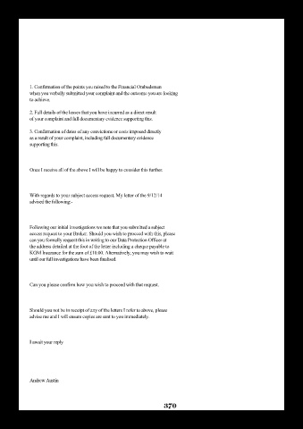 1. Confirmation of the points you raised to the Financial Ombudsman