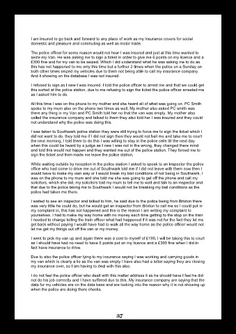 Due to also the police officer lying to my insurance saying I was working and carrying goods in