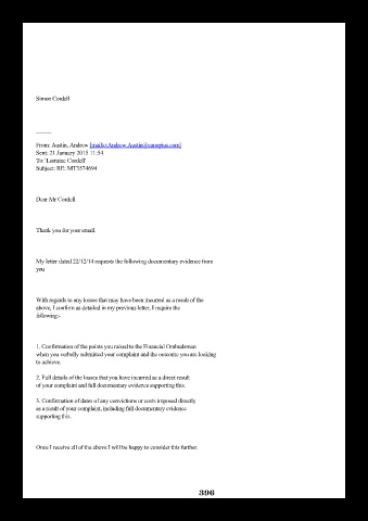 1. Confirmation of the points you raised to the Financial Ombudsman