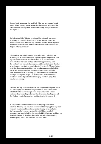 duty so I could not speak to them and Kelly Tiller was saying unless I could