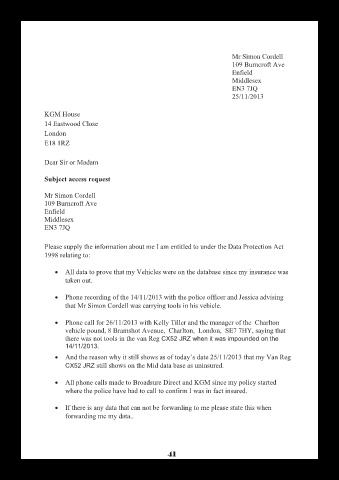 • All phone calls made to Broadsure Direct and KGM since my policy started