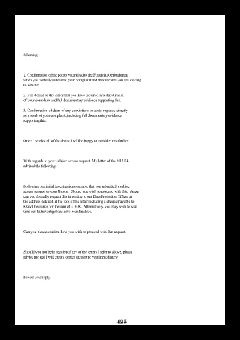 1. Confirmation of the points you raised to the Financial Ombudsman
