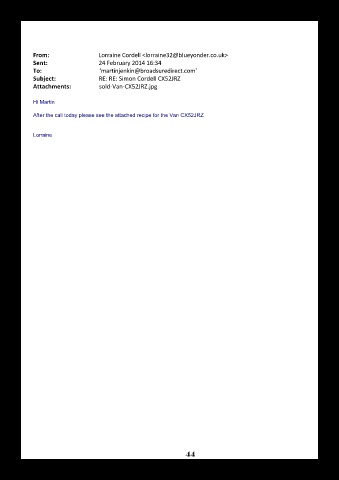 Mr Simon Cordell From: Lorraine Cordell <lorraine32@blueyonder.co.uk>