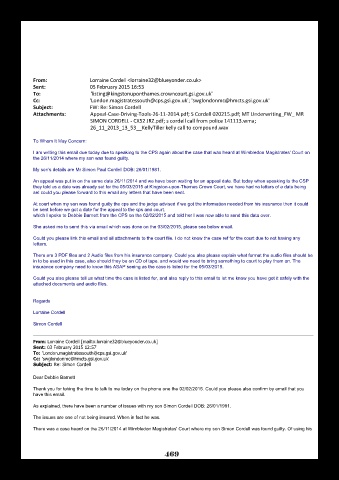There was a case heard on the 26/11/2014 at Wimbledon Magistrates' Court where my son Simon Cordell was found guilty. Of using his
