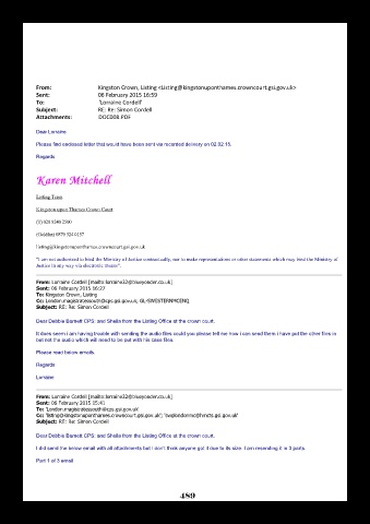 Dear Debbie Barnett CPS: and Sheila from the Listing Office at the crown court.