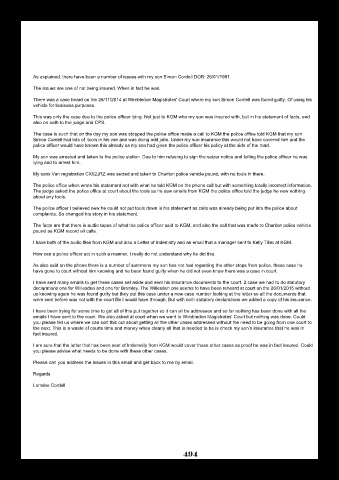 There was a case heard on the 26/11/2014 at Wimbledon Magistrates' Court where my son Simon Cordell was found guilty. Of using his