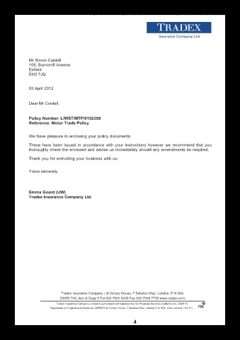 Tradex Insurance Company Ltd Victory House, 7 Selsdon Way, London. E14 9GL