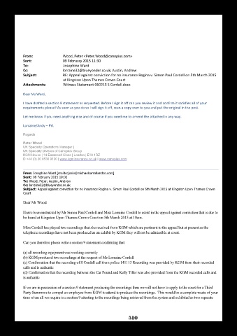 Subject: RE: Appeal against conviction for no insurance Regina v. Simon Paul Cordell on 5th March 2015