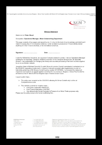 RE: Appeal against conviction for no insurance Regina v. Simon Paul Cordell on 5th March 2015 at Kingston Upon Thames Crown Court->Witness Statement 060215 S