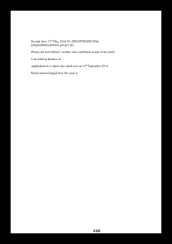 Phone call from Simon’s mother who confirmed receipt of the email.