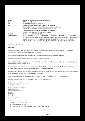 I am writing this email again due to a case being heard at court and me being found guilty. On the 26/01/2015 Case number: