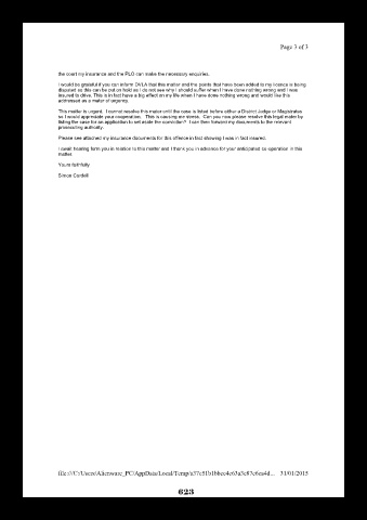 I would be grateful if you can inform DVLA that this matter and the points that have been added to my licence is being