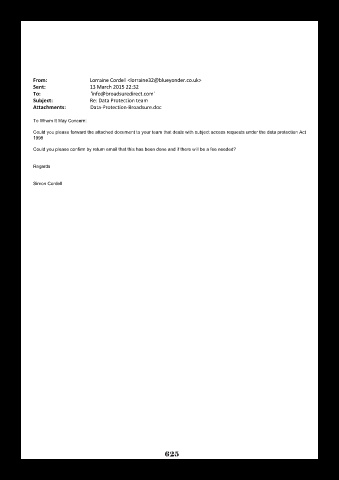 Could you please forward the attached document to your team that deals with subject access requests under the data protection Act