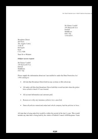 • All data that Broadsure Direct hold on any systems or files about me.