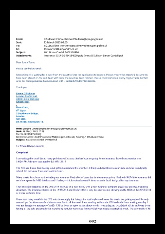 having all the calls and emails that were being sent, her name was Emma O'Sullivan please see attached email. The only traffic CPS