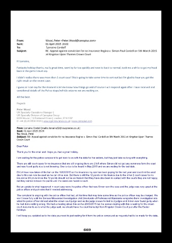 Subject: RE: Appeal against conviction for no insurance Regina v. Simon Paul Cordell on 5th March 2015 at Kingston Upon Thames