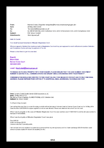 I am writing this email due to a case for using a vehicle without insurance that was heard at Harrow Crown Court on the 14 May 2015