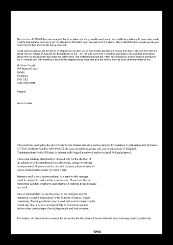 Also the fine of £600.00 the court arranged this to be taken out of my benefits each week. this is still being taken out I have today made