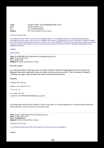 As confirmed to Mrs Cordell last week, a member of staff at Tottenham Magistrates Court will research the