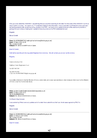 what it said in the email. As I said in my 1 email when asking for the information I have a case that is at Woolwich crown court and I