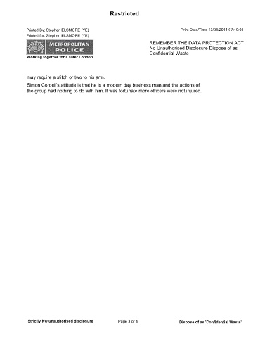 Strictly NO unauthorised disclosure Page 4 of 4 Dispose of as 'Confidential Waste’