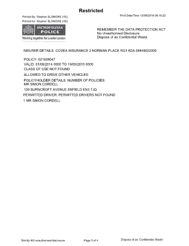Strictly NO unauthorised disclosure Page 4 of 4 Dispose of as 'Confidential Waste’