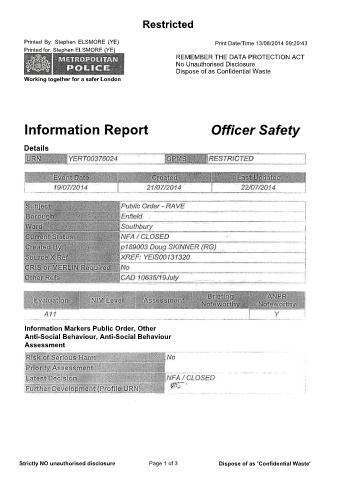 ROAD ENFIELD regarding a possible rave in the empty premises. There j was about 20 people
