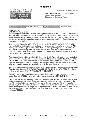 Strictly NO unauthorised disclosure Page 3 of 3 Dispose of as 'Confidential Waste’